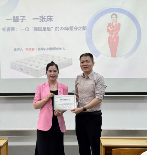 “回看来路,我不过是把‘让别人睡得舒服’这句话重复了三十年,重复到它变成标准、变成专利、变成跨洋的货柜。所以,别小看你们此刻的任何一个小念头——它可能就是十年后某家上市公司的第一颗种子。今晚关灯前,想想什么事能让你甘愿反复打磨、反复失眠又反复兴奋,找到它,守住它,剩下的交给时间。”在讲座结束之前,杨青香这样说。